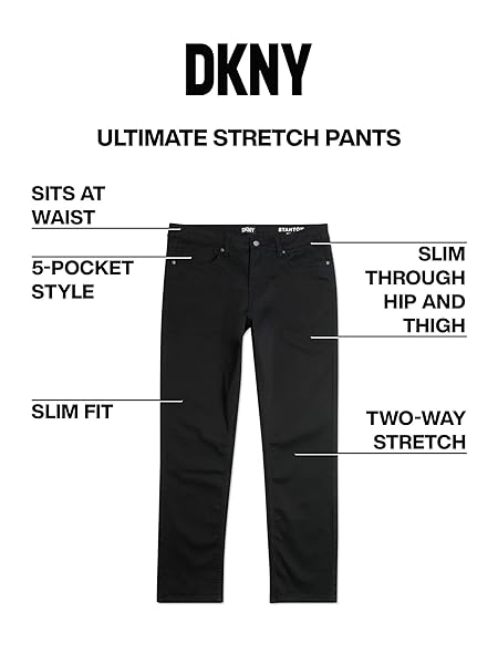 Upgrade your wardrobe with these DKNY Men’s Ultimate Stretch Pants. These slim-fit pants sit below the waist and are slimmer through the seat and thigh, providing a modern, stylish look that’s perfect for any occasion. They feature five pockets, including a coin pocket, offering ample storage for all your essentials. Made with a blend of 64% cotton, 33% poly, and 3% spandex, these pants offer superior comfort and flexibility, ensuring maximum mobility and ease of movement. The 14″ leg opening fits perfectly over any footwear, making them versatile and suitable for any outfit or occasion. The zipper closure adds a touch of sophistication and security to these pants, ensuring they stay in place all day long. These pants are machine washable, making them easy to care for and perfect for everyday wear. Upgrade your wardrobe with these stylish and comfortable DKNY Men’s Ultimate Stretch Pants.