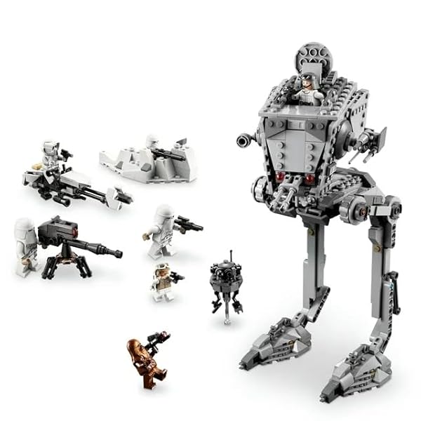 Relive the epic Star Wars battle on the planet Hoth in this 2 in 1 combo pack, a great gift for both kids and adults. Pit The Rebellion against The Empire with 7 LEGO Star Wars Minifigures and 1 LEGO droid. Recreate moments from Star Wars: The Empire Strikes Back, and create new ones with this special 2 in 1 Star Wars toy combo building set. Battle it out with the Snowtrooper Battle Pack featuring assorted blaster weapons, a stud-shooting E-Web heavy repeating blaster, a snow trench with extra ammunition, and a buildable Imperial Hoth speeder bike. Plus, an AT-ST featuring an opening hatch and roof for access to the Minifigure cockpit, a wheel-operated rotating head, 2 spring-loaded shooters and posable legs. Contains 691 pieces.